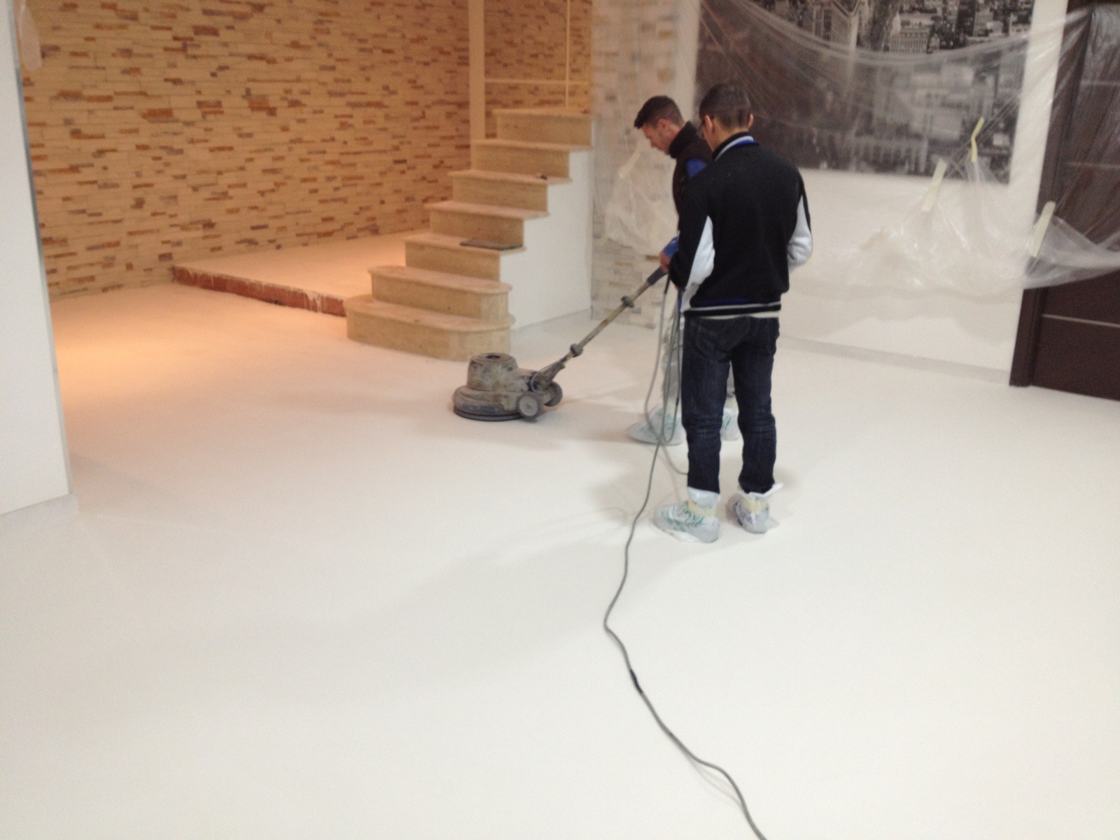 Il pavimento  resinoso (70mq pavimento) e stato eseguito dalle nostre squadre altamente specializzate nell’anno 2012 (dicembre). E stata utilizzato un Cemento Spatolato + Resina Acrilica  monocolore bianca – finitura semilucida.