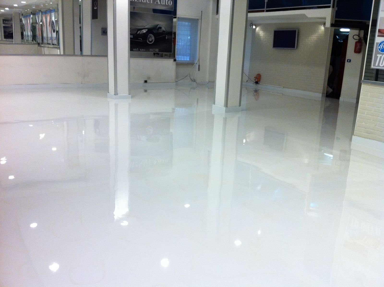 Il pavimento resinoso di circa 100mq e stato eseguito dalle nostre squadre altamente specializzate nell’anno 2011. E stata utilizzata una resina epossidica bicolore – finitura lucida – strato di resina autolivellante di circa 3mm.
